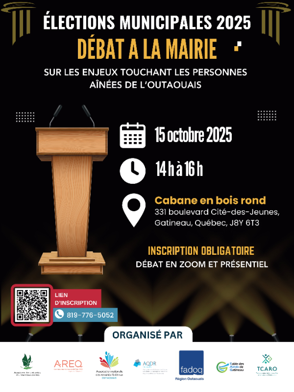 Pour faire de notre Salon FADOQ Outaouais un grand succès, nous avons besoin de bénévoles dynamiques prêts à offrir quelques heures de leur temps ! Même une demi-journée fait toute la différence. Présenté par LOBE, le salon aura lieu les 25 et 26 octobre 2025 au Palais des congrès de Gatineau, de 10 h à 16 h 30.