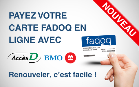 Vous pouvez maintenant renouveler votre carte FADOQ encore plus facilement grâce au paiement direct via Accès D et BMO.