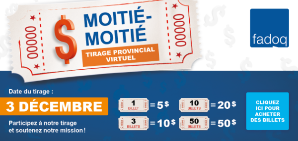 Participez au grand tirage moitié-moitié provincial de la FADOQ!
