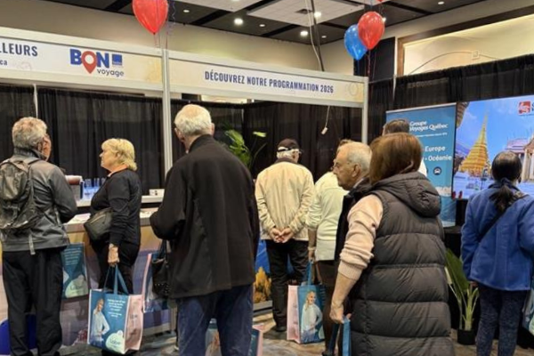 Découvrez un avant-goût de notre programmation de voyages 2026 et courez la chance de gagner l’un des quatre chèques-cadeaux de 250 $ offerts par Groupe Voyages Québec en remplissant une fiche d’intention de voyage ou en réservant sur place. Nous sommes installés au coeur du salon, près du kiosque FADOQ !