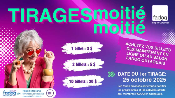 La cagnote atteint déjà 10 179 $. Serez-vous l’heureux gagnant? Dépêchez-vous ! Les billets sont en vente jusqu'à 16 h pour ce tirage. Le tirage du numéro gagnant est prévu à 16 h 15. Restez à l'affût pour ne rien manquer !