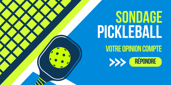Aidez-nous à mieux comprendre vos besoins, vos attentes et vos intérêts liés au Pickleball. Prenez quelques minutes pour répondre à ce court sondage de 11 questions et contribuer à l'amélioration de notre offre d'activités. Merci de participer activement à cette reflexion collective, vos réponses sont très précieuses.