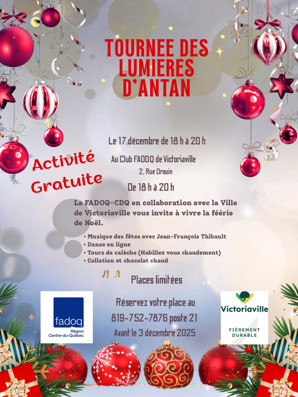 Le Club FADOQ Victoriaville convie les personnes présentes au Souper des Fêtes à une prestation spéciale de la Chorale À Cœur Ouvert, juste avant le début du repas.