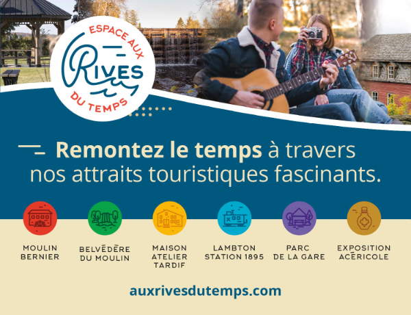 Découvrez le Moulin Bernier, le wagon Lambton-Station, la Maison-Atelier Tardif et un belvédère sur la chute et le canyon. Histoire, culture et émerveillement vous attendent à Courcelles!