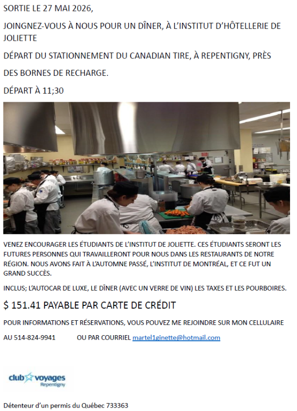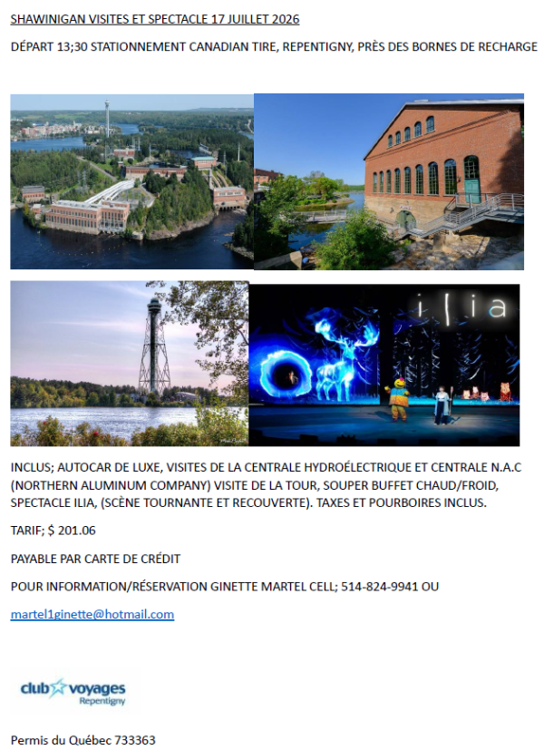 SUGGESTION : SORTIES/VOYAGES de groupe organisés par Club Voyage Repentigny